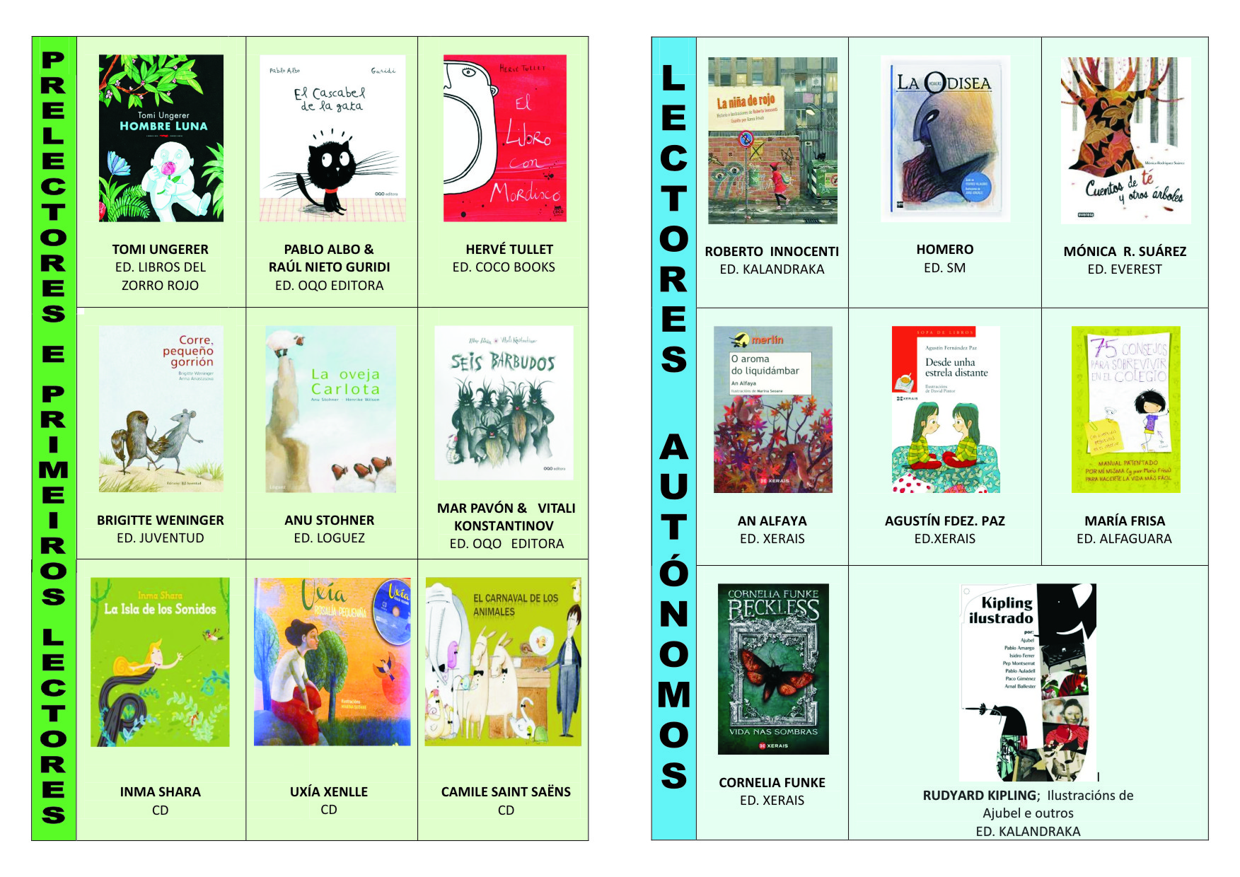 - CEIP Figueroa, CEIP O Foxo, CEIP Plurilingüe Oca (A Estrada, Pontevedra) e CEIP NosaSeñora das Dores(Forcarei, Pontevedra). Guía de lecturas conxunta