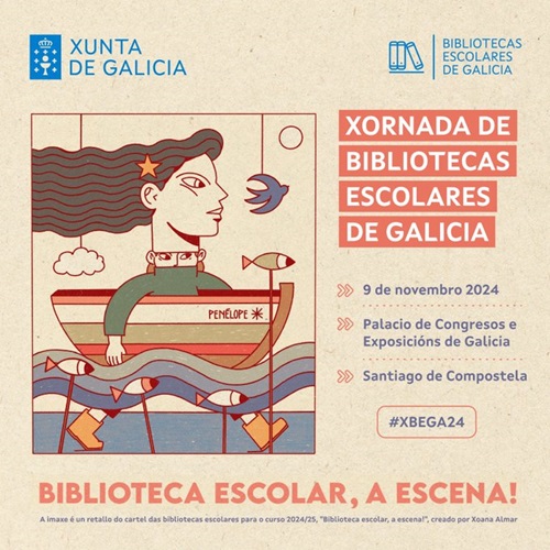 O vindeiro sábado 9 de novembro celebrarase no Palacio de Congresos de Santiago de Compostela a Xornada de Bibliotecas Escolares de Galicia 2024. Daranse cita equipos de biblioteca, docentes, asesores/as dos centros de formación do profesorado e persoas expertas na temática do lema deste curso "Biblioteca escolar, a escena!".