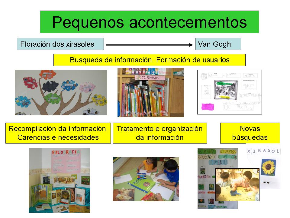 Experiencias arredor de varios temas: colaboracións entre centros, integración TIC e biblioteca, Hora de ler, Clubs de lectura, Maletas Viaxeiras, implicación das familias, roteiros literarios...