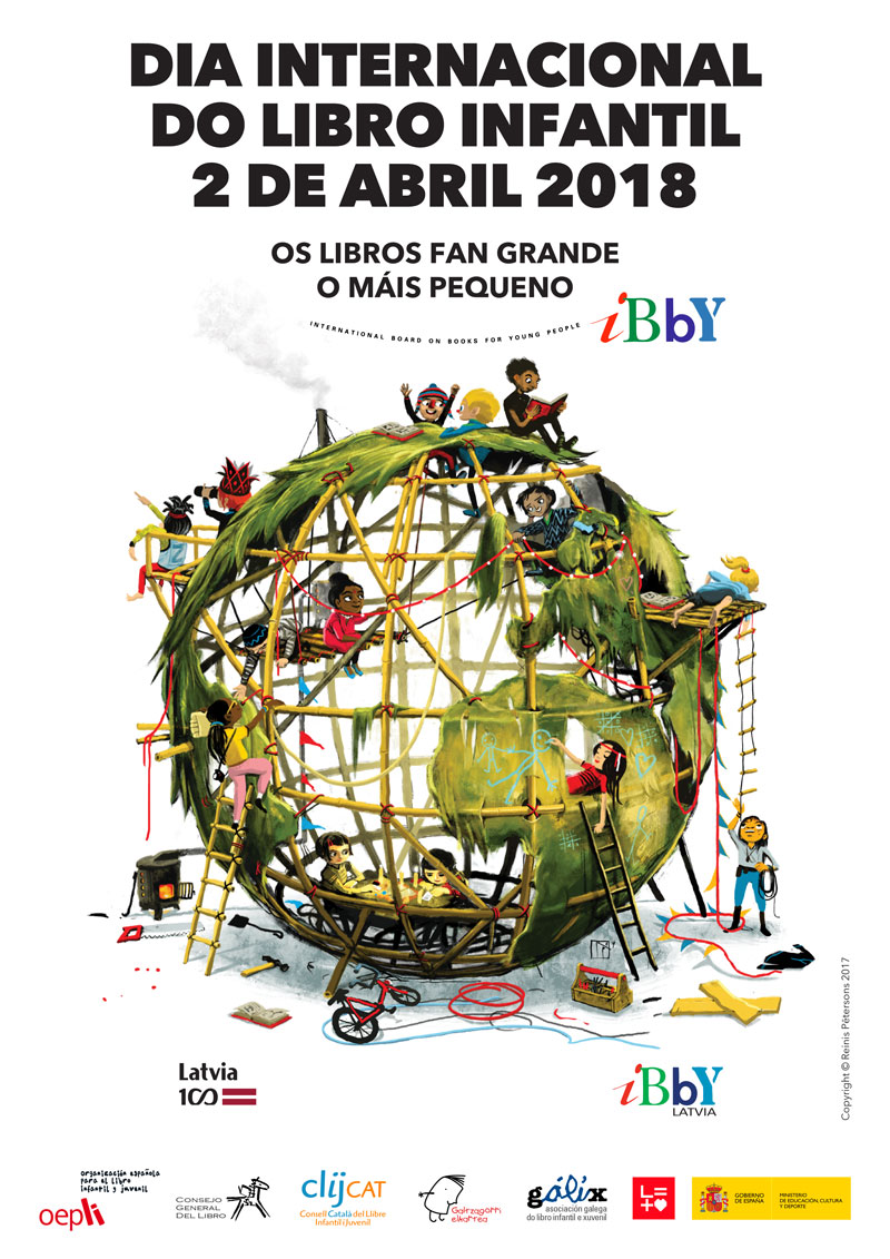 Coma en anos anteriores, o Ibby (International board on books for young people) chama á conmemoración do Día Internacional do Libro Infantil o día 2 de abril, data de nacemento de Hans Christian Andersen. A responsabilidade do cartel e o díptico deste ano 2018 correspondeulle a Letonia. Ten a autoría do texto a escritora letona Inese Zandere, poeta, editora e activista da promoción da lectura quen titula a súa mensaxe: Os libros fan grande o máis pequeno.