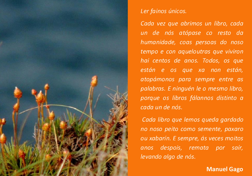 "Cada libro que lemos queda gardado no noso peito como semente, paxaro ou xabarín"